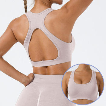 Çift omuz askıları ile özelleştirilebilir tek parça spor sutyen nefes nervürlü spor sutyeni güzel Hollow geri Yoga yeleği